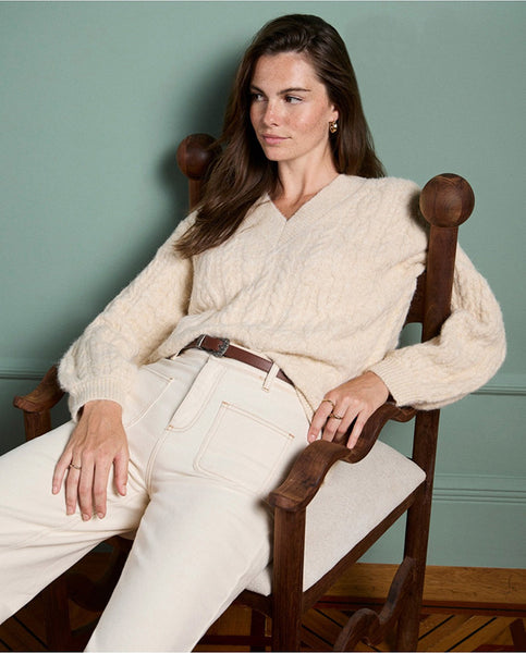 Vaquero de tiro alto y corte ancho, confeccionado en una mezcla de algodón y Tencel con un toque de elastano que garantiza confort y libertad de movimiento. Su diseño destaca por los bolsillos frontales y una silueta amplia que alarga visualmente. Biodegradable y organico.