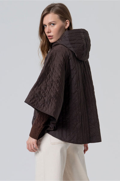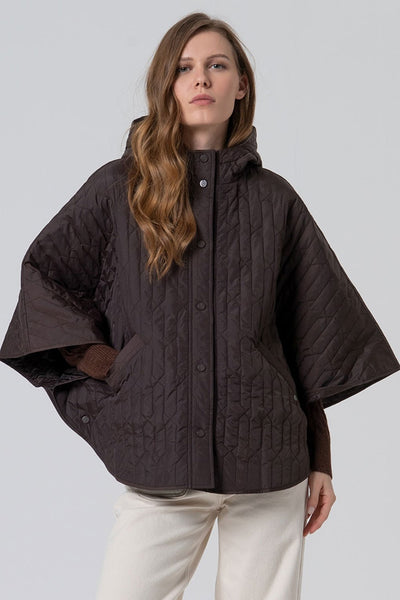 Capa acolchada fina con mangas, bolsillos y cierre clips, con capucha.
